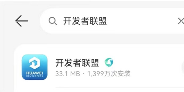 1、首先用户需要先在华为应用找到【开发者联盟】,点击下载冰登录应用。