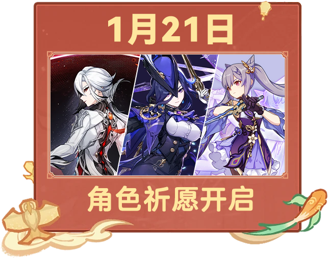 ★角色祈愿:阿蕾奇诺&克洛琳德&璃月集录祈愿(1-21 18:00~2-11 14:59)