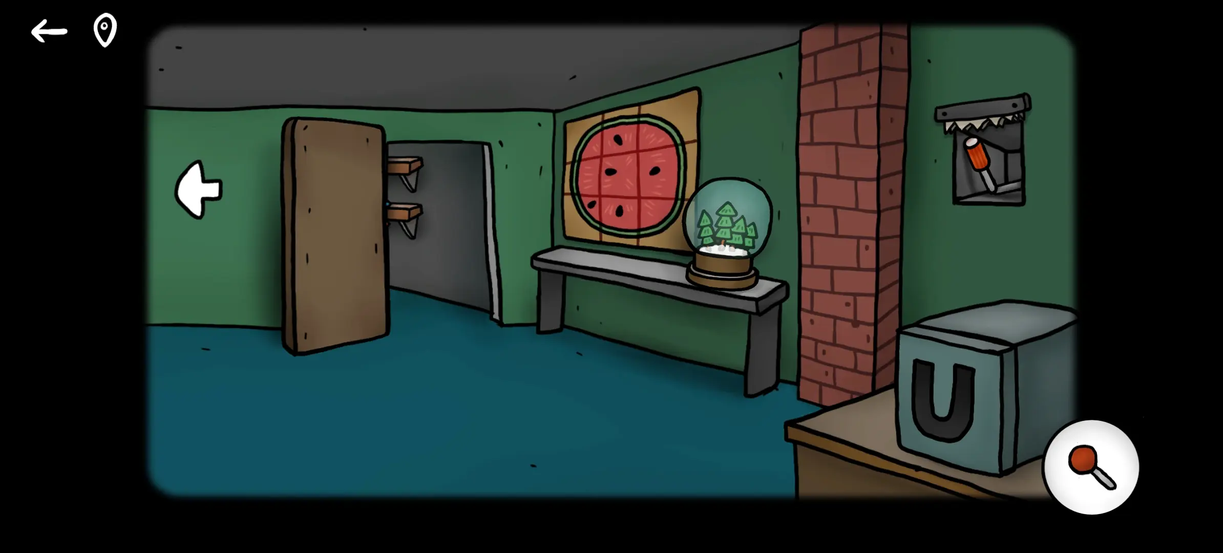 1左桌子底下的摇杆后面在豌豆妹妹(9)和洋葱先生(16)那边开门会用到。