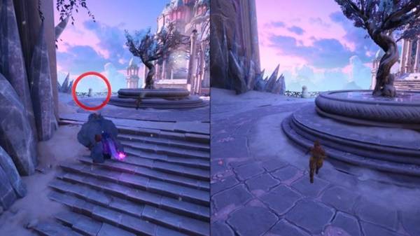 在城堡入口处有一个雪人,旁边有 三个雪球。将三个雪球都以猴子的形态扔出去即可