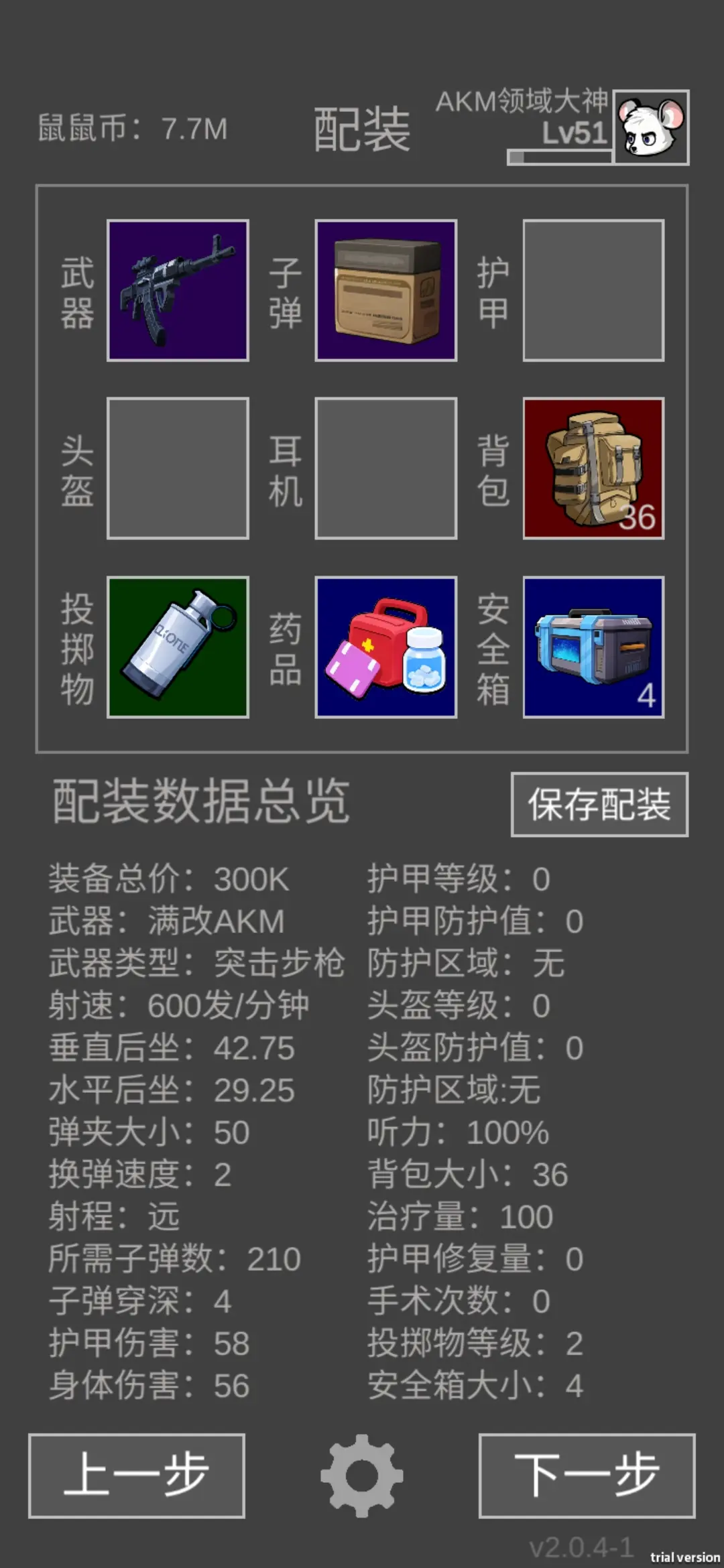 这把核心出装满改AKM四级钢芯弹和闪光弹,无需头甲,叫上我们的好厚米破产鼠,其他看自己是否有条件安排