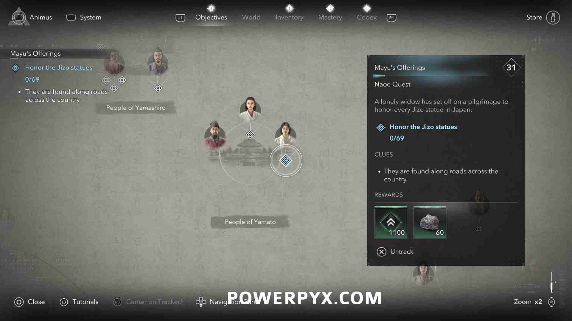 地藏菩萨像是大和支线任务所需的任务道具,总共需要收集69尊。在地图上以白色的地藏像图标显示,只有在完全放大地图时才会出现。与其他收集要素不同的是,地藏像的位置不会在地图上显示“?”标记,但已经找到的地藏像可以按触摸板在地图上筛选显示。