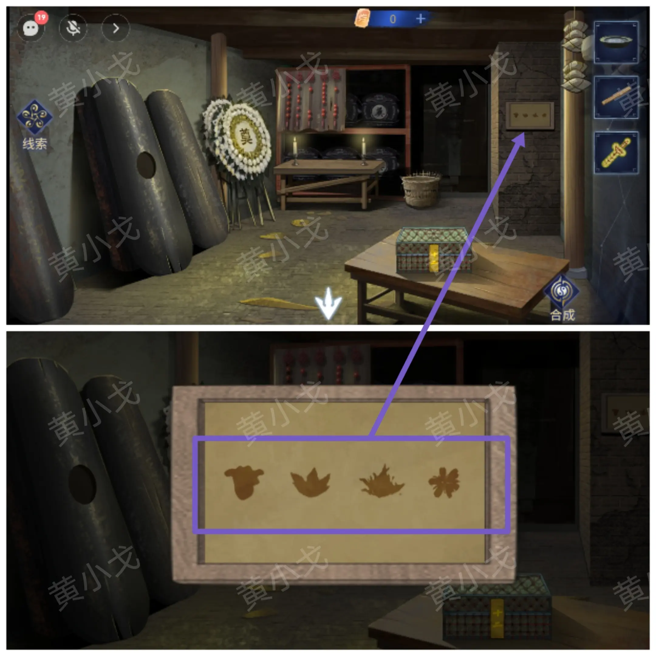 19.点击石头上的机关,根据男主那边黄纸符上的线索,解开机关