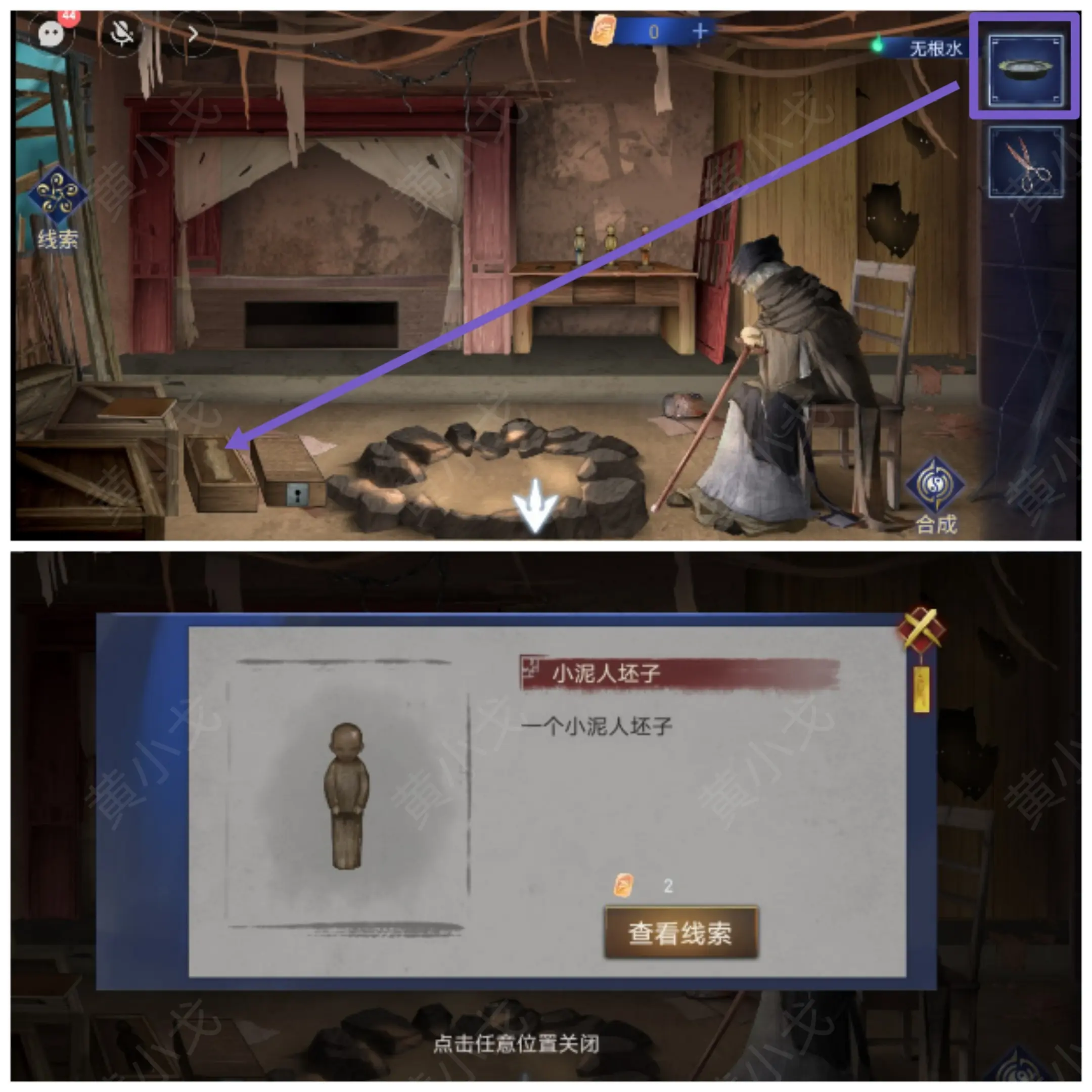 8.用【钥匙】打开地上的模具;放入【黄泥】和【无根水】,获得【小泥人坯子】