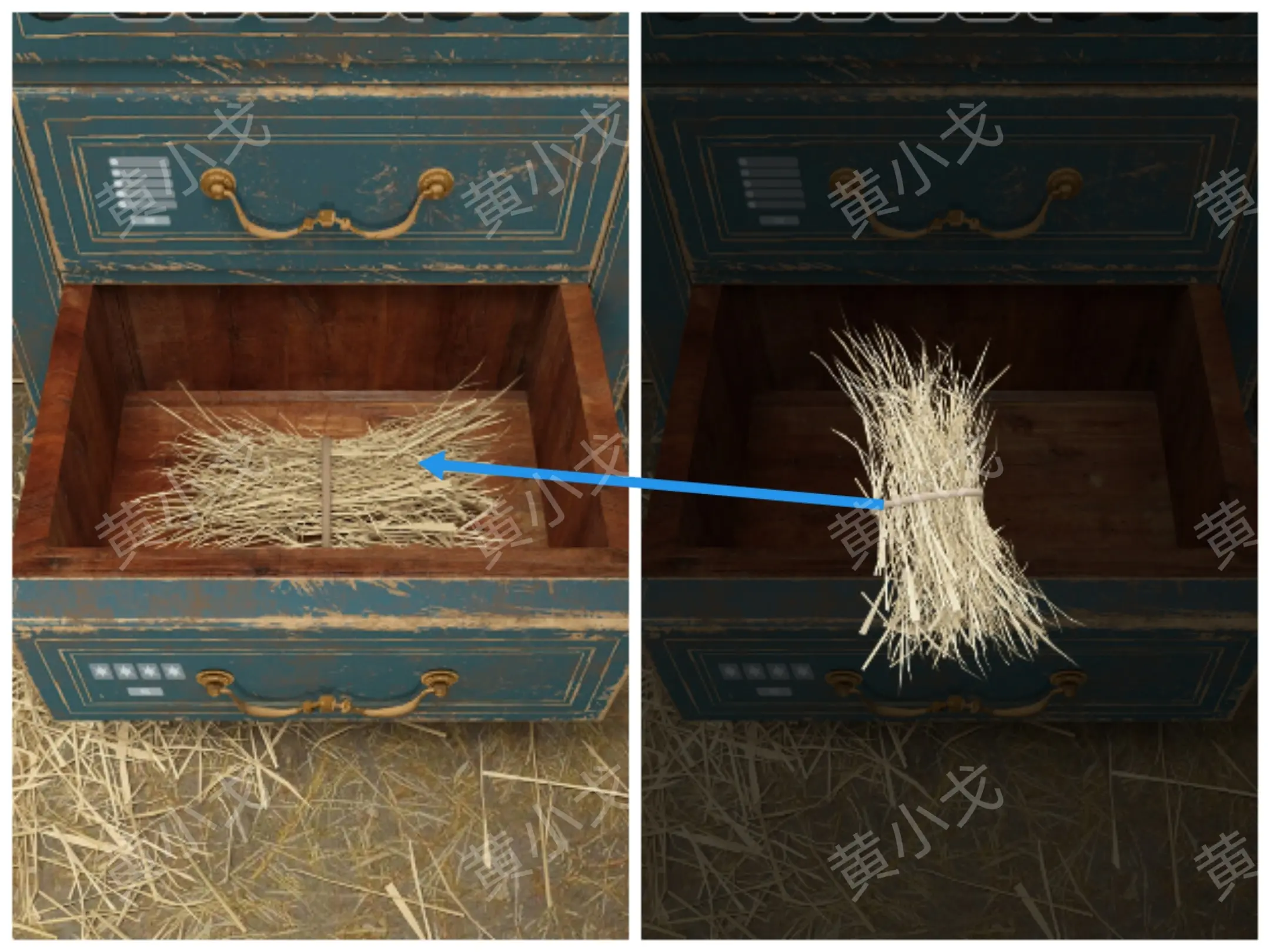 14.打开抽屉,获得【干草】