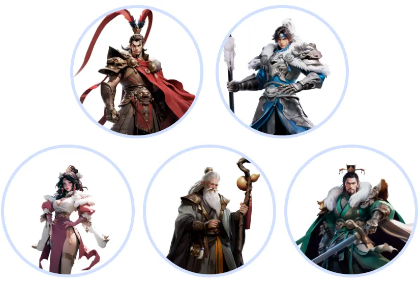 后排:貂蝉(群·骑)、华佗(群·弓)、刘备(蜀·弓)