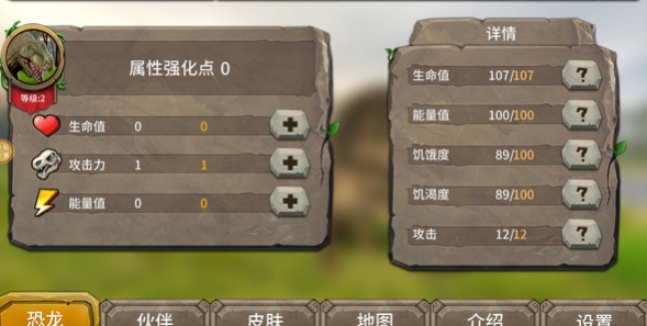 2.通过吞噬其他生物获取进化点数,提升霸王龙的力量、速度、防御等属性,解锁新的进化形态;