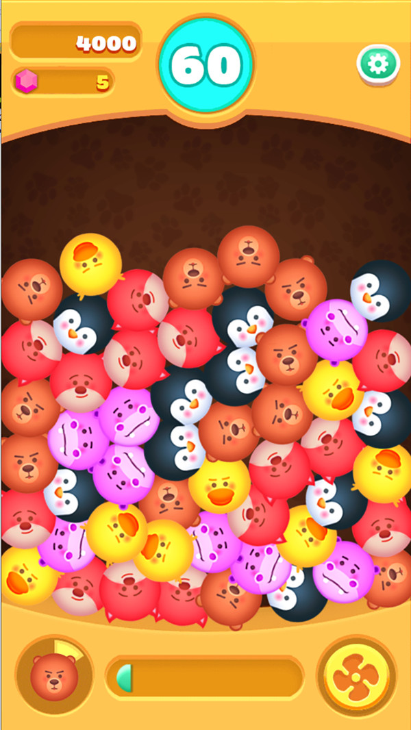 3、每关都有明确的目标,消除特定数量的小动物,完成目标即可进入到下一关。