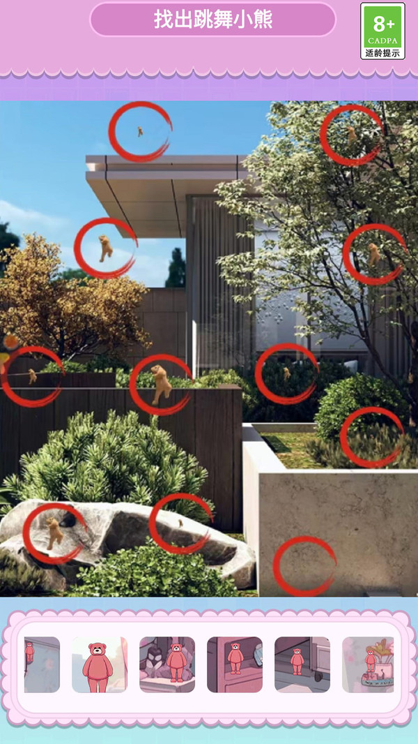 3、在游戏中收集各种道具,帮助更快地发现隐藏的熊孩子,提升游戏体验。