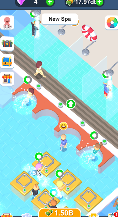 水疗大亨全解锁版是一款经营游戏,玩家将将要一家水疗中心,解锁不同的设施,带来多样化的布局,提供不同的解压服务,满足顾客需求,还要招募专业的员工,通过培训,提升能力,不断去完成更多的订单任务,获得收益,快速扩大你的水疗中心规模。