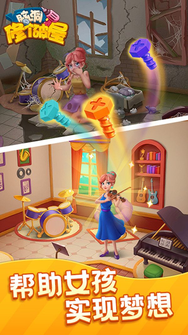 脑洞修个破屋游戏是一款全新的螺丝消除游戏,精美清新的卡通界面,有着轻松简单的控制操作,在这里不断观察场景之中的结构,我们要找到每个连接的螺丝,通过不断点击相同的来解决每个难题,获得不同的道具,开始修复各种各样的破屋,考验你的头脑智慧。