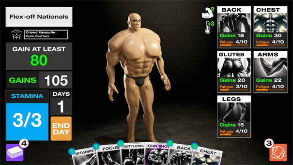 3、玩家需合理搭配卡牌,制定科学健身计划,逐步提升体能与肌肉力量,冲击健美冠军。