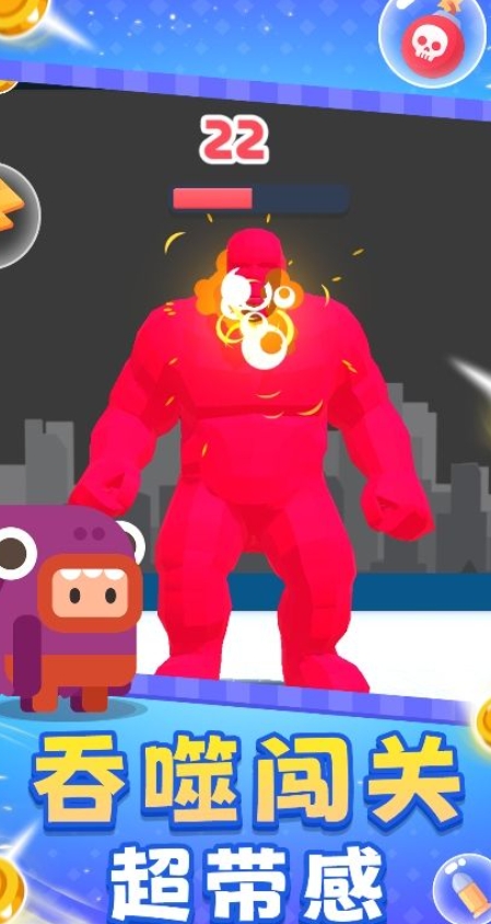 1.通过吞噬获得的积分,去完成不同的趣味挑战,解锁超多的游戏快感;