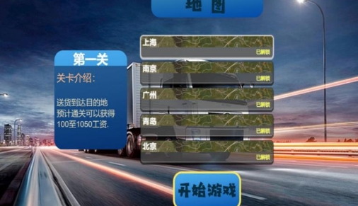 1.玩家需要驾驶不同的卡车,将货物从起点运输到指定的地点;