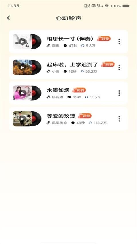 3、流行铃声应有尽有,让你的来电与众不同,告别无趣无味的系统铃声。