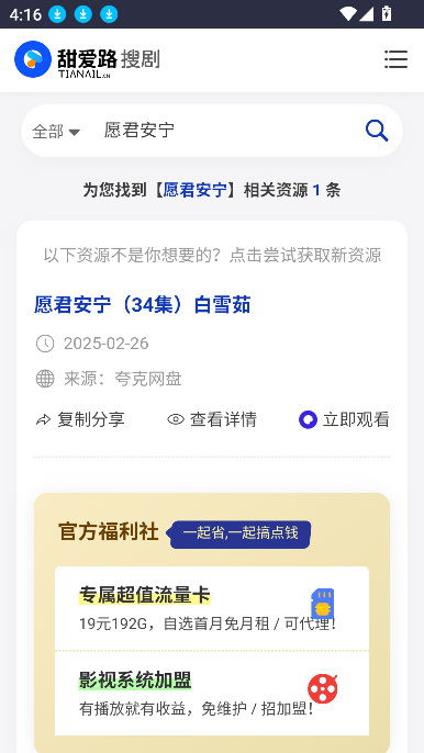 甜爱路搜剧app是一款很不错的可以让你随时来这看各种精彩短剧应用,最新上线的短剧都在这,任你随时来这搜索,随时来这下载,你想看就可以在线看,各种视频比较齐全,来这看视频也是比较方便,你还可以随时推送一起看。