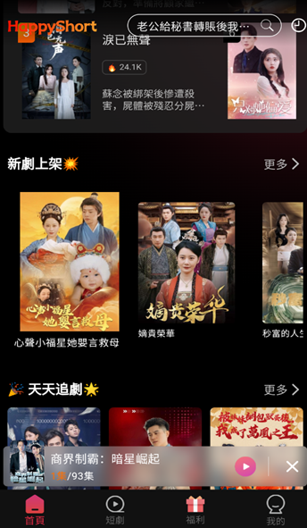 HappyShort app是更多人都可以轻松看剧的短剧软件,线上可以有多种不同的剧本可以为你提供,你可以根据自己的喜好来进行选择,这样就可以让你徜徉在不同的剧情当中,随时可以在线来沉浸式体验,人人都可以轻松上手。